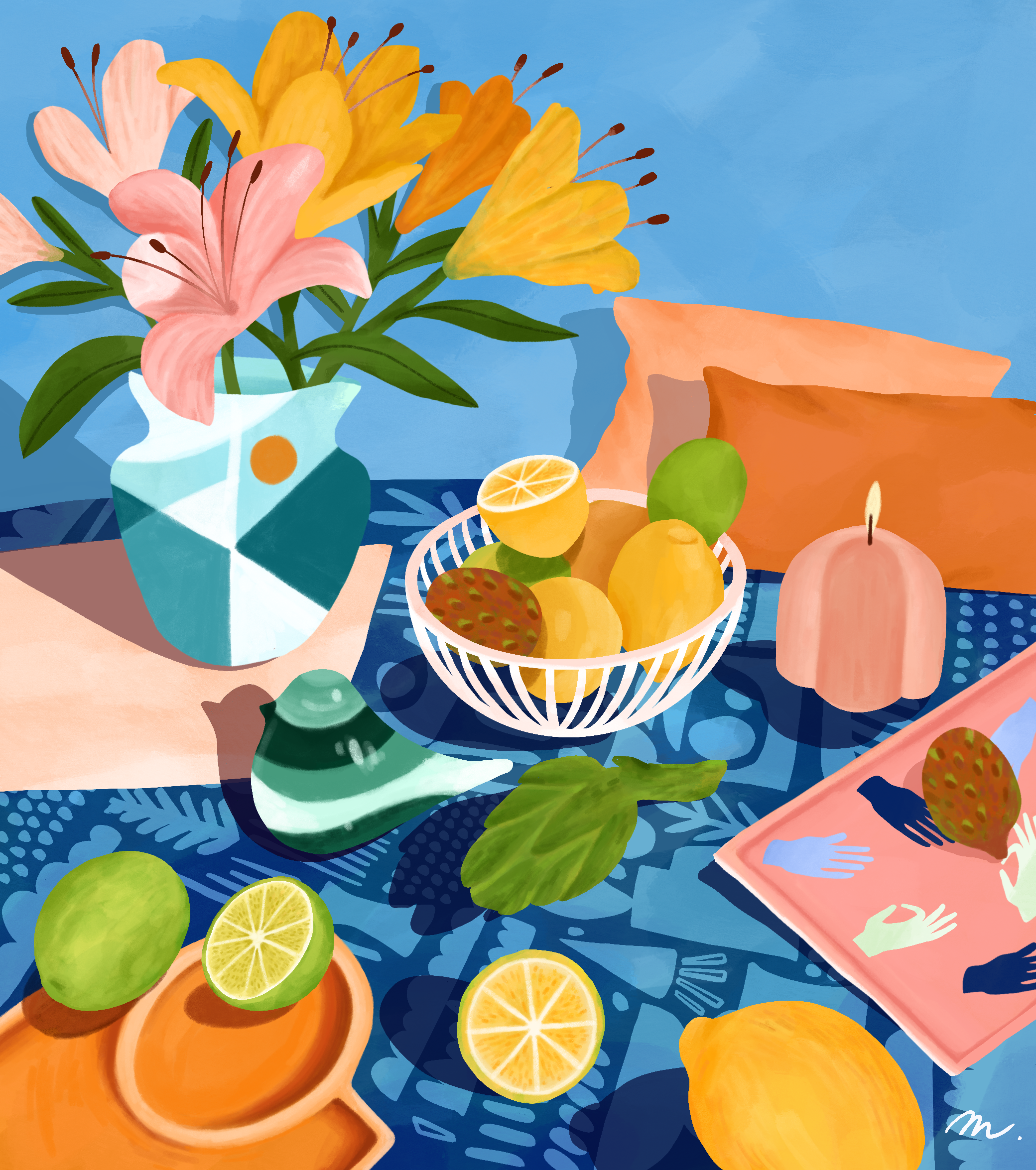 The moments that stay in our memory are the still ones. The silence that these illustrations hold is precious and I’m always drawn to capturing these moments. For most of 2020, home quarantine required me to get acquainted with my surroundings in a more intimate way. This journal brings together those moments along with compositions I explored through the weekly challenges by @stillherestilllife, a community on instagram focused on food related still life compositions.